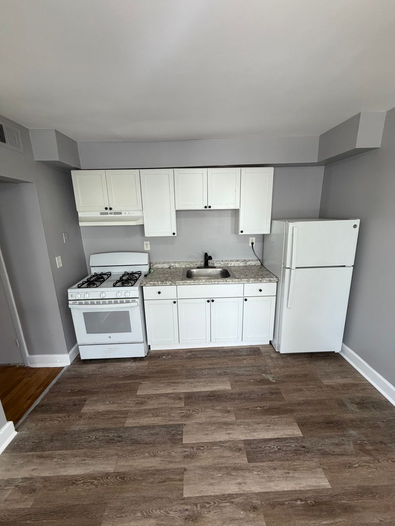 The unit has been freshly painted and features refinished hardwood floors that give the space a clean, updated feel. The bathroom has also been recently improved with a new bathtub and surround, adding a modern touch.